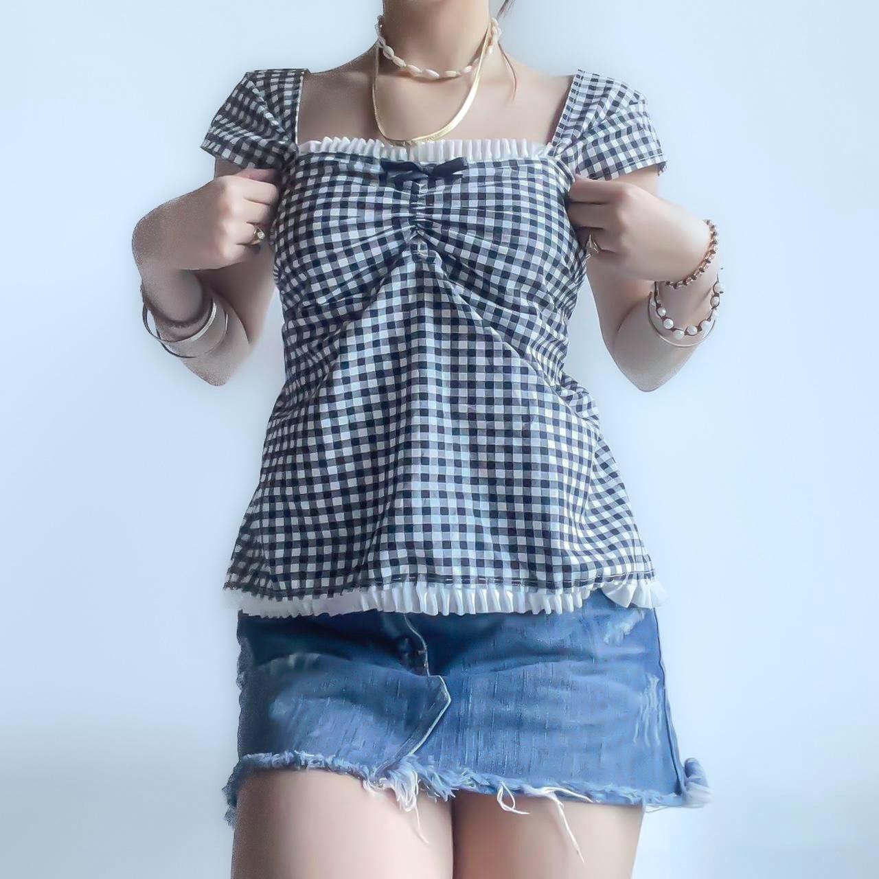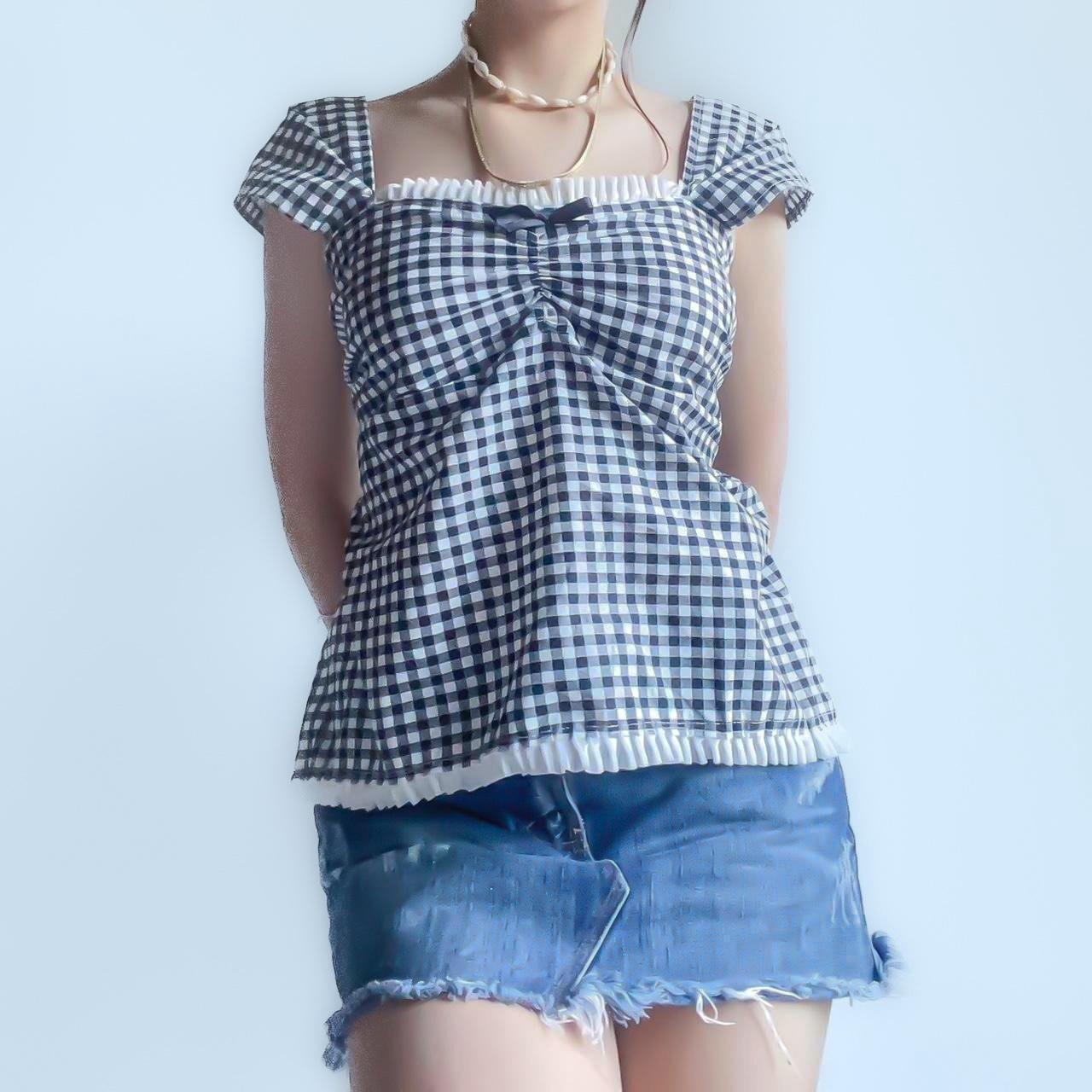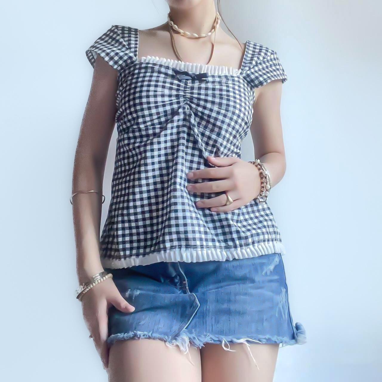 black and cream plaid tie back top. Hand made by me with love! #plaidtop
