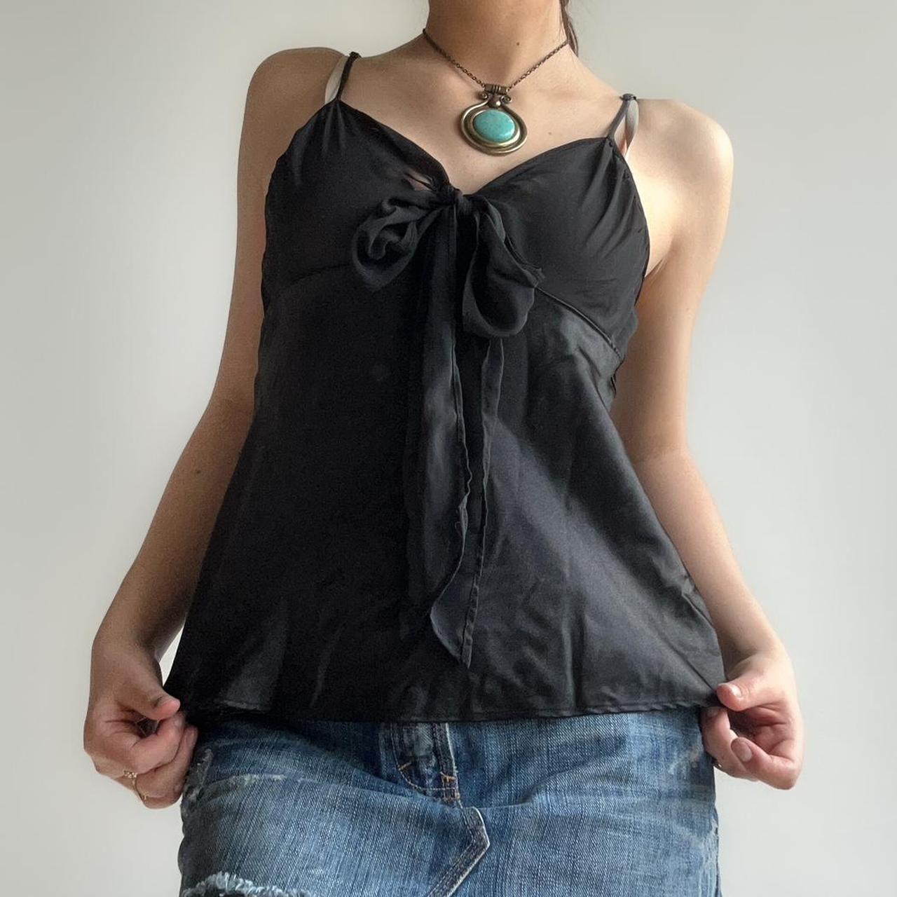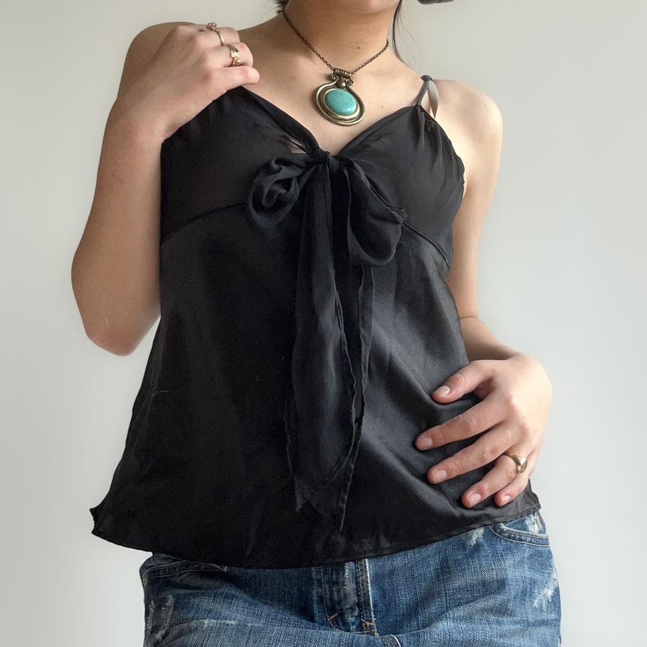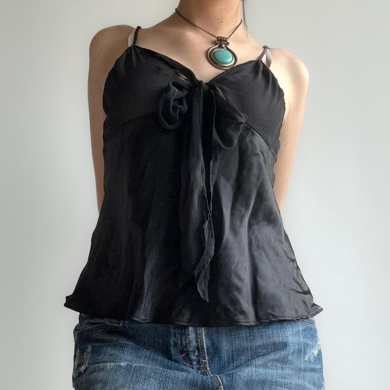 black sheer top with a tie up bow