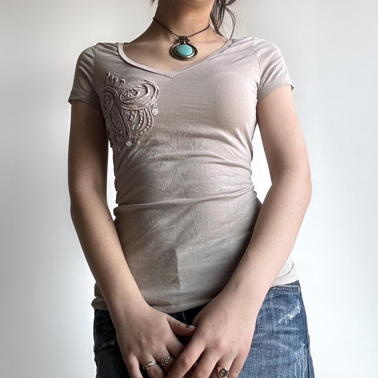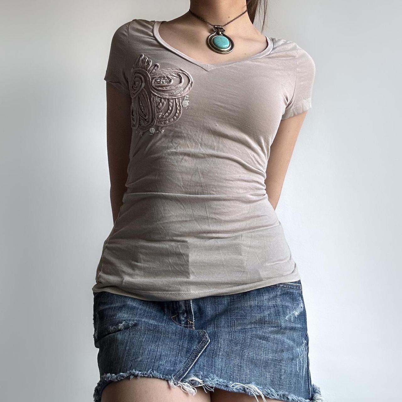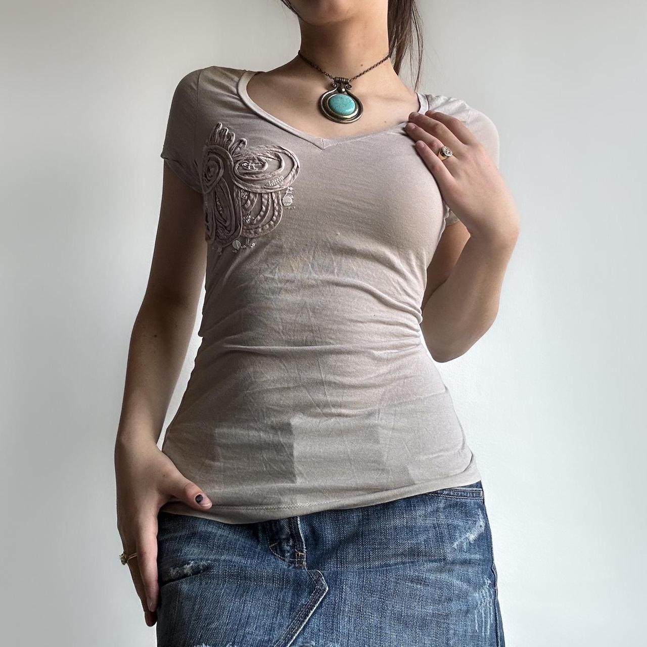 Y2K cream embellished short sleeve tight fit top